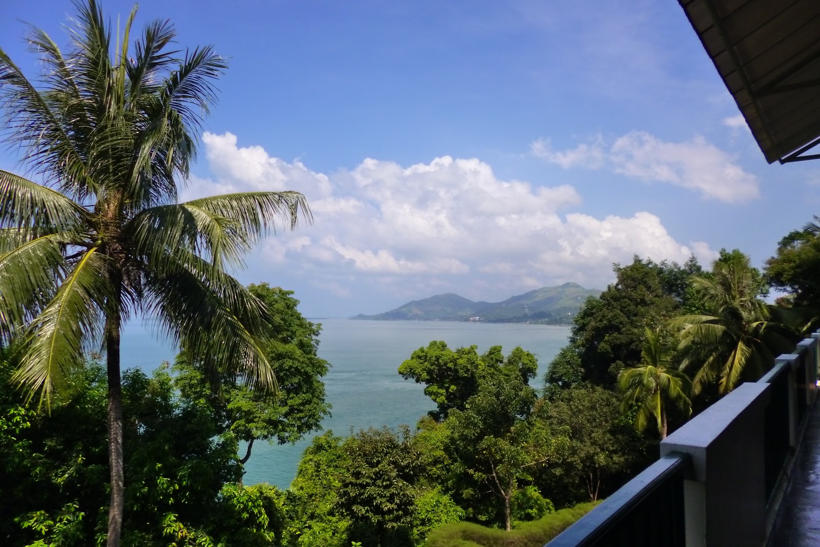 Man wird dann recht zügig ins Victoria Cafe (ein im Hotel befindliches Restaurant) gelotst – schließlich hat man nur 50 Minuten Zeit bis man wieder zurück nach Thailand muß. In diesem Cafe/Restaurant gibt man seinen Essensgutschein ab und bekommt 3 Minuten später das Essen, welches man morgens im Minibus aus dem Menü ausgewählt hat, vorgesetzt. Es sind 3 Tische schön mit der Aufschrift „Andaman Visa“ reserviert und da sitzt man eben mit all den anderen, wildfremden Visa Runnern aus aller Herren Länder, wie z.B. den Philippinen, Brasilien, Dänemark, England usw. Immerhin kann man während des Essens den schönen Blick auf Myanmar (so nehme ich zumindest mal an) genießen:
