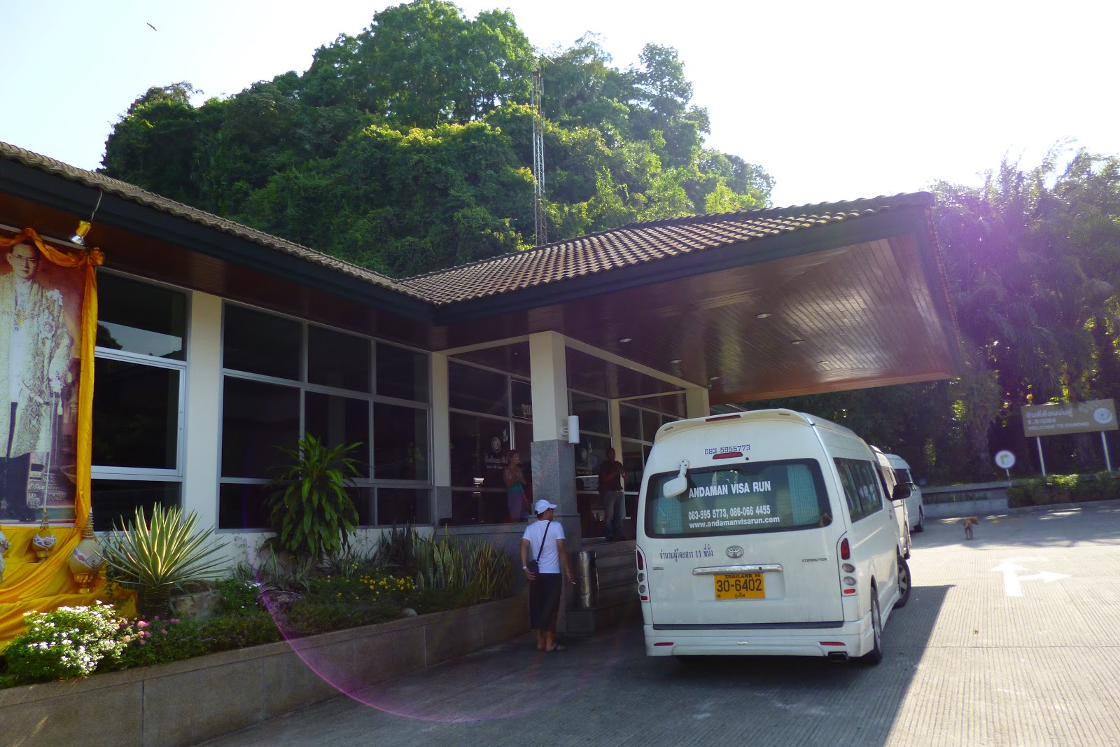 Der heisst so, weil man von hier aus mit der Fähre in den Andaman-Club auf einer kleinen Insel in Myanmar gebracht wird. Der Andaman-Club ist ein Hotel. Es wirkt ziemlich groß, aber ich habe dort keinen einzigen Gast gesehen und mir scheint der einzige Zweck dieses Hotels ist, den Visa Runnern während der einen Stunde Aufenthalt mit einem Mittagessen zu verköstigen und Duty Free Shopping möglich zu machen. Aber bevor man in den Genuß des Andaman-Clubs kommt, muss man erst durch die Ausreise in diesem Gebäude: